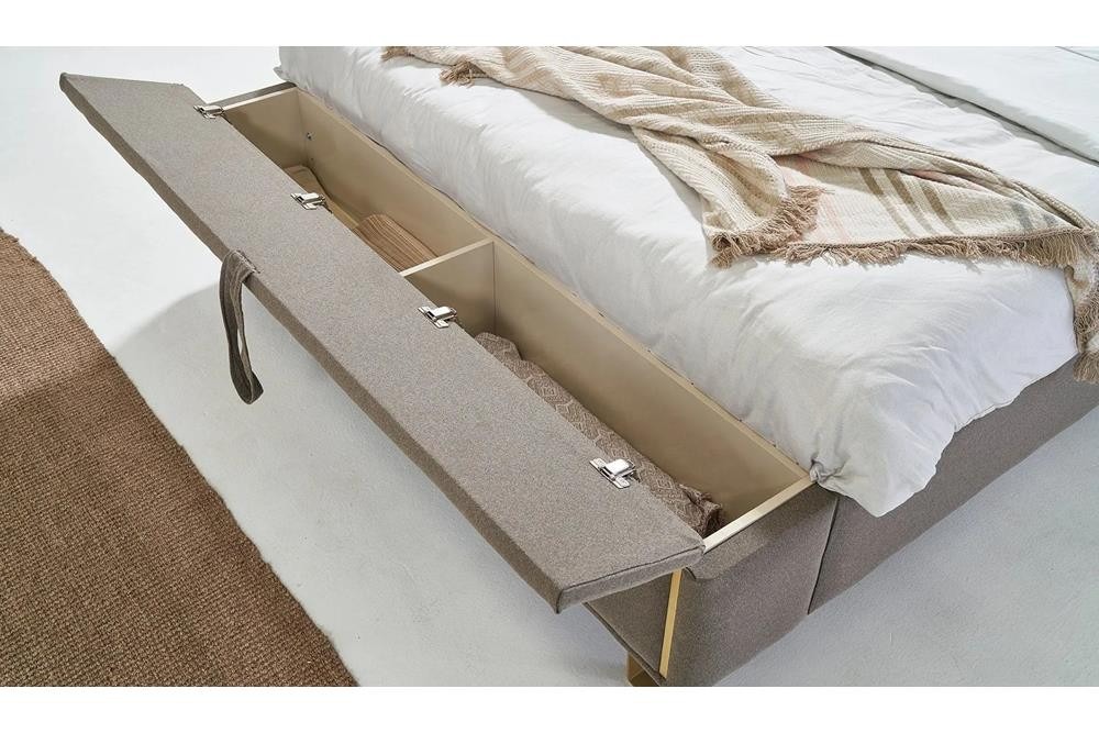 Karyola; baza ve benç özelliğine sahiptir. 160×200 cm yatak ölçüsüne uygundur. Kumaş silinebilir keten kumaştır.